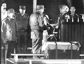 a la llegada de los restos de los guerrilleros caídos en Bolivia